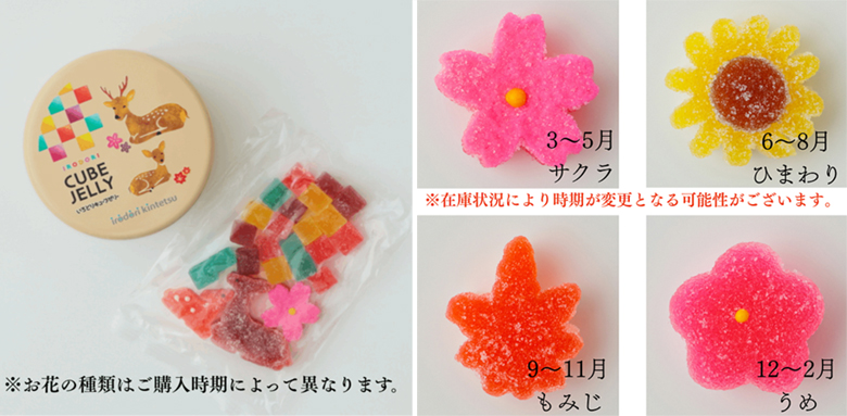 近鉄沿線の素材を使った一口サイズの寒天ゼリーは、小さなお子さんでも食べやすいキューブ状です。